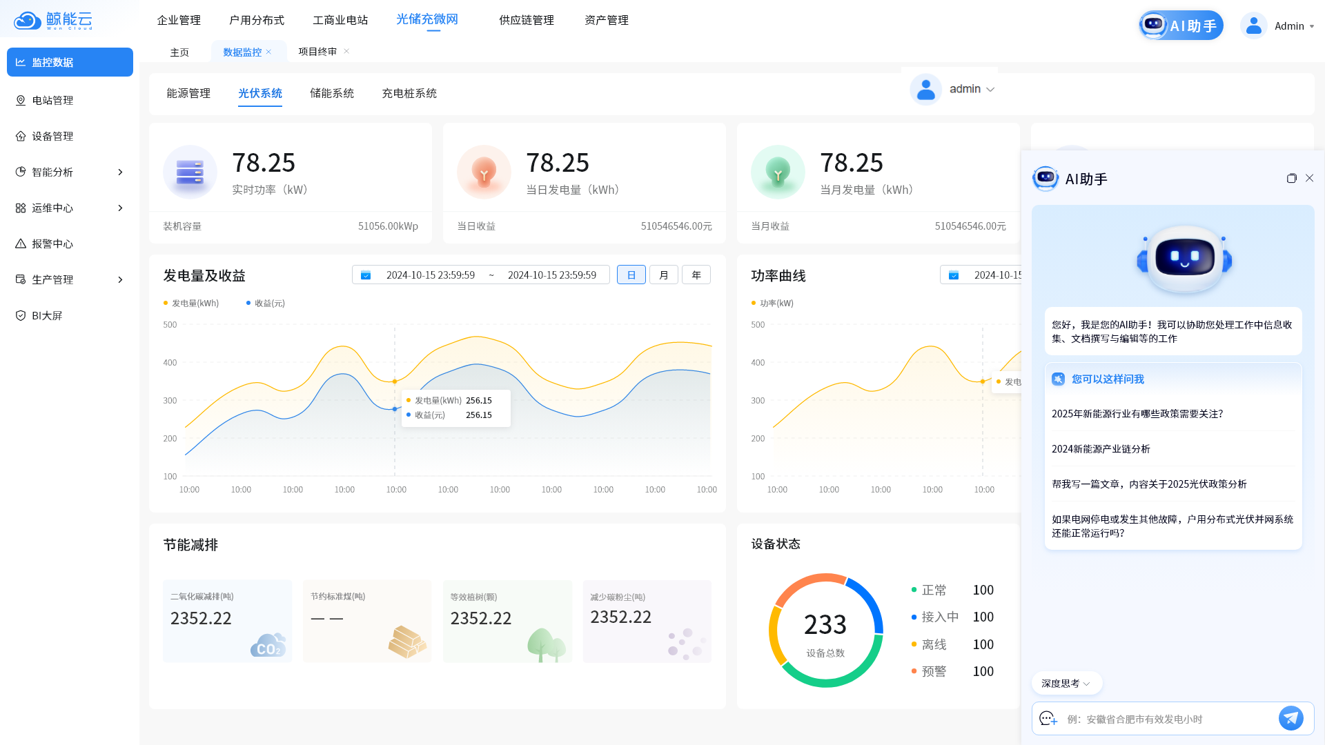 通过数智化为企业用户提供收益核算、融资还款跟踪、资产处理等增值服务,帮助企业做出更加经济合理的决策,实现精细化的资金管理和贷款规划,全方位保障电站资产安全与长期稳定收益。