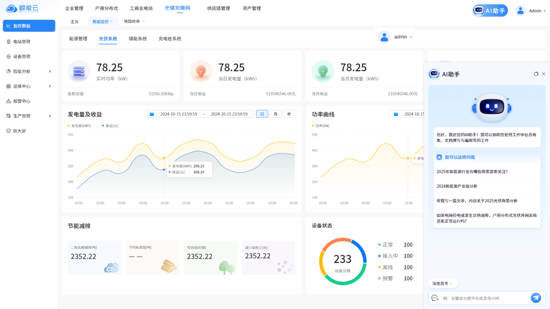 鲸能云本次系统升级,除全面接入DeepSeek外,凭借创新的储能业务管理系统,全面助力储能电站实现全生命周期的高效管理。通过流程线上化,将储能管理系统(储能EMS)与储能业务管理系统无缝对接,鲸能云实现了储能资源的智能化调度与监控,推动了储能电站运营的数字化与智能化升级。