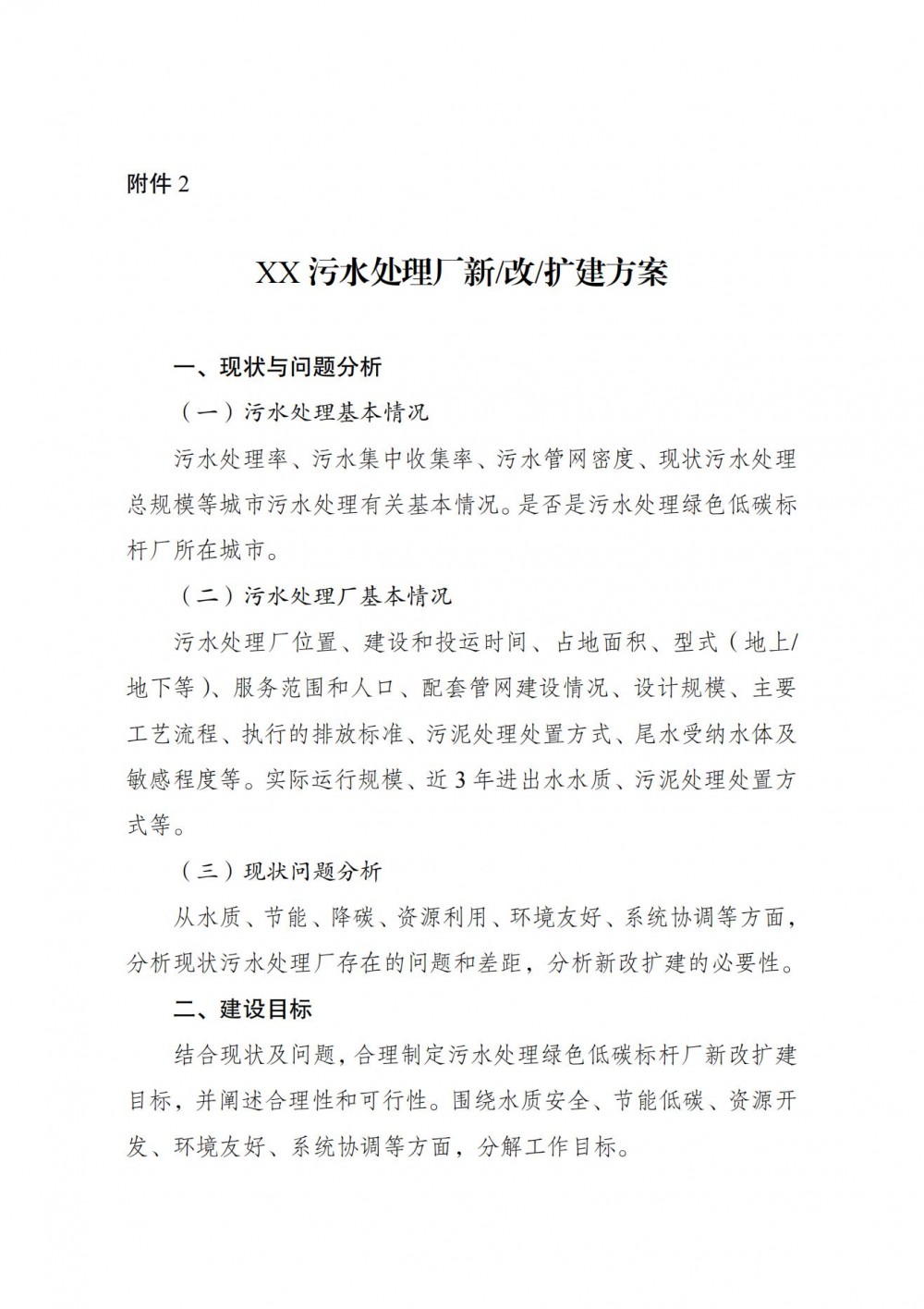 各地可组织相关部门,对标已公布的绿色低碳标杆厂建设运行指标,借鉴相关经验做法,按需谋划新建高标准污水处理厂,或对具备改扩建基础条件的污水处理厂实施改造。新改扩建项目应编制《XX污水处理厂新/改/扩建方案》(附件2),经省级发展改革委会同住房城乡建设主管部门审核后择优推荐,并将推荐材料报送国家发展改革委。推荐的新改扩建项目,应确保2025年底前完工。各省(区、市)推荐数量不超过10个,申报时间后续通知。