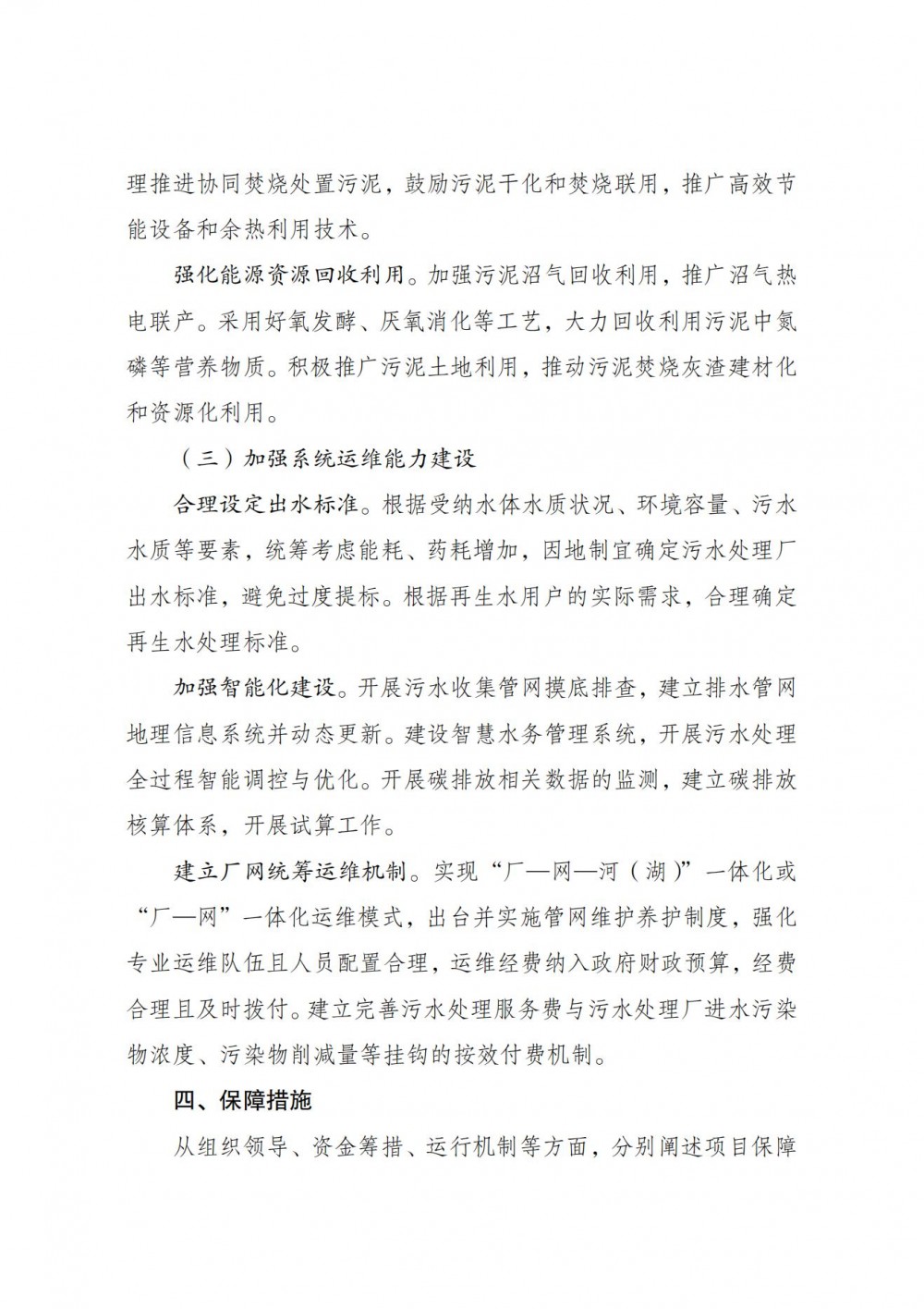 加强污水源热泵和光伏发电的能量回收。推广污水源热泵技术,对厂内及周边区域供暖供冷,在光照资源丰富地区稳妥推广“光伏+”模式,适时布局智能微电网、新型储能设施,推动积极参与绿证交易。