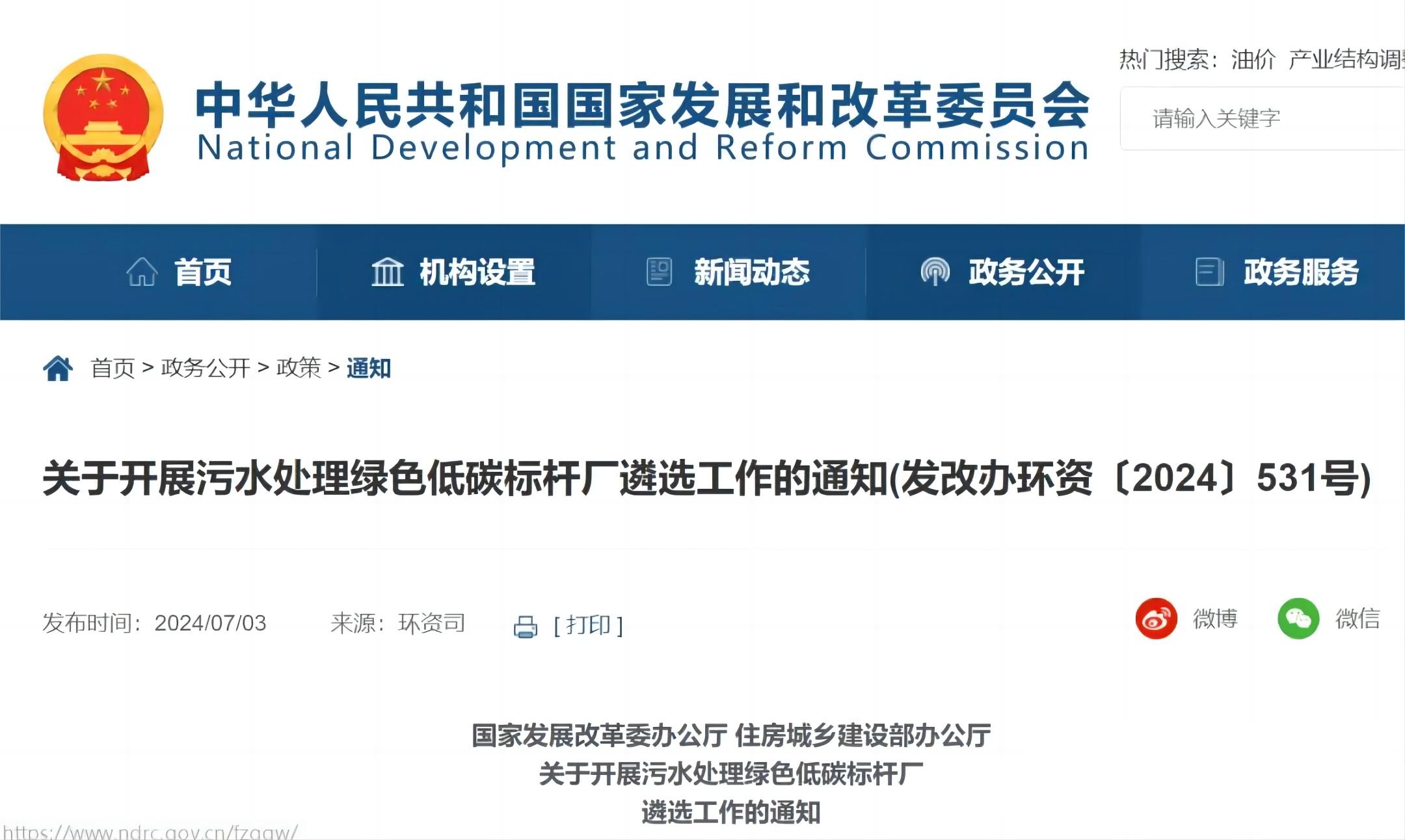 7月3日,国家发展改革委办公厅 住房城乡建设部办公厅发布关于开展污水处理绿色低碳标杆厂遴选工作的通知,通知指出,为落实《关于推进污水处理减污降碳协同增效的实施意见》(发改环资〔2023〕1714号),拟遴选建设一批污水处理绿色低碳标杆厂,发挥引领示范作用,推动行业绿色低碳转型,助力美丽中国建设。