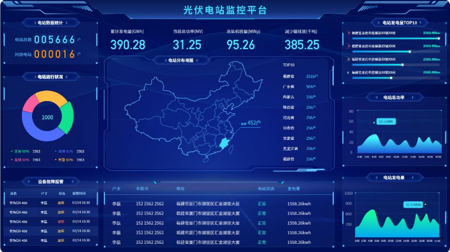 ● 电站数据:汇总所有电站,查看电站运行情况