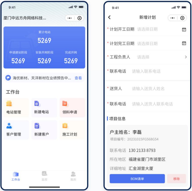 ● 电站管理:开户、建站、领料、施工一站式服务