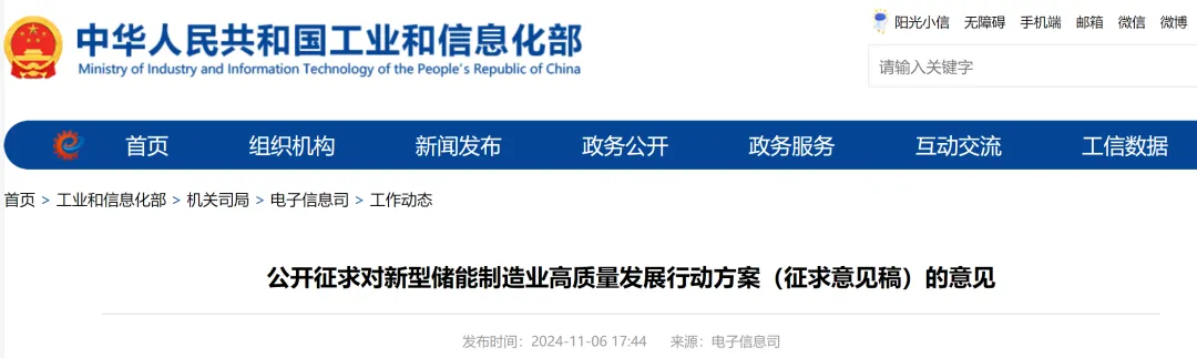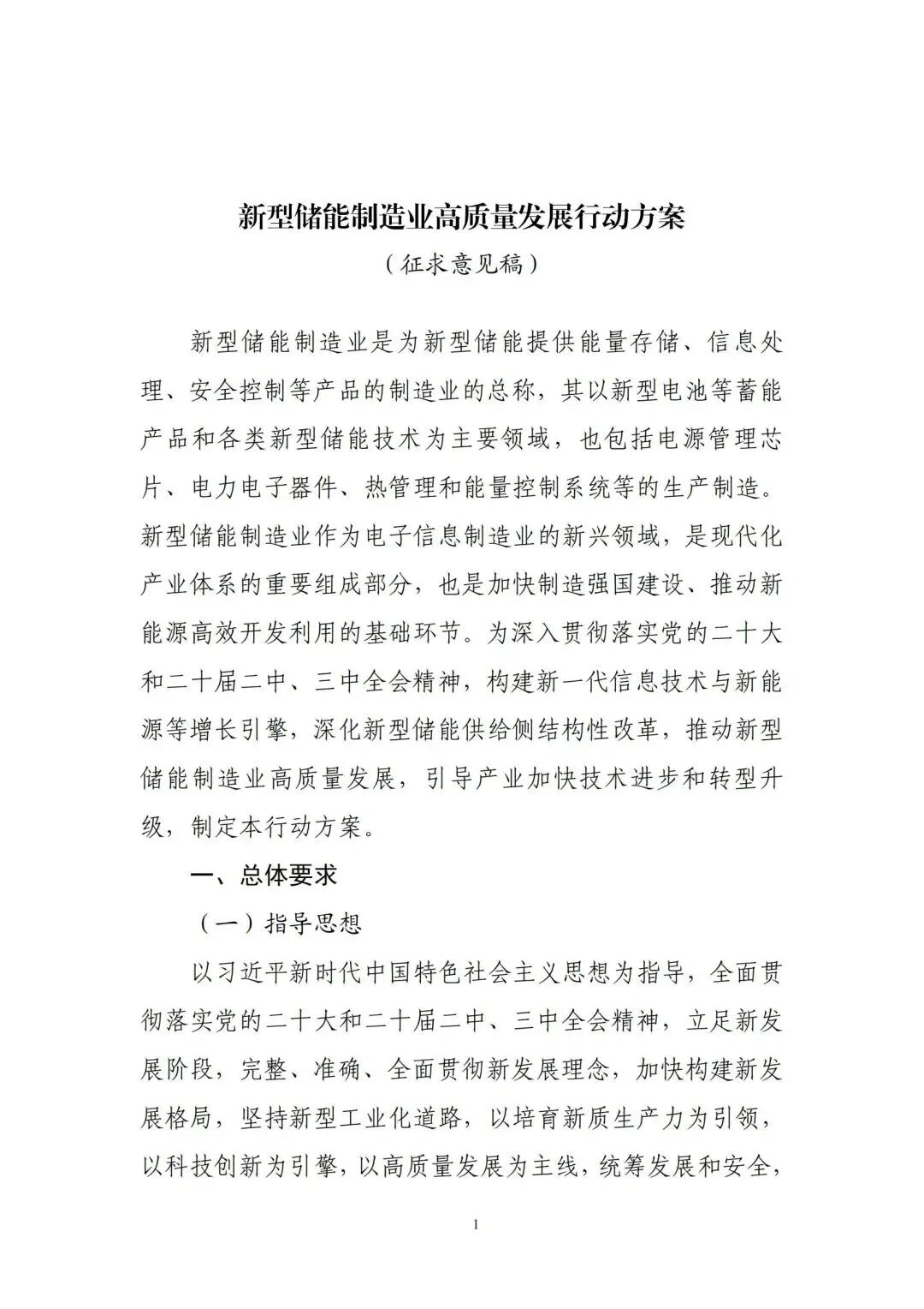 为深入贯彻落实党的二十大和二十届二中、三中全会精神,深化新型储能供给侧结构性改革,推动新型储能制造业高质量发展,工业和信息化部组织编制了《新型储能制造业高质量发展行动方案》(征求意见稿),现公开征求意见。如有意见或建议,请于2024年11月11日前书面反馈至工业和信息化部电子信息司。