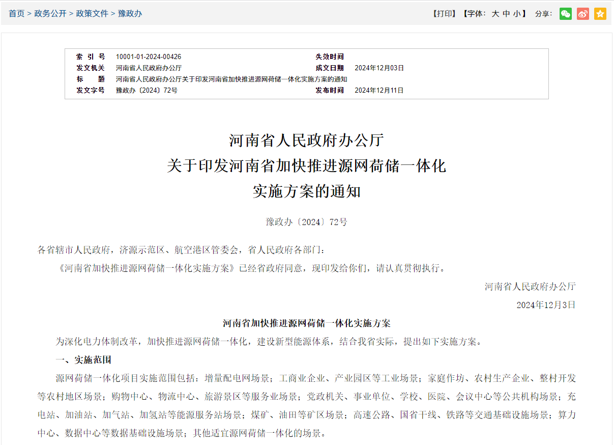 河南:加快推进源网荷储一体化