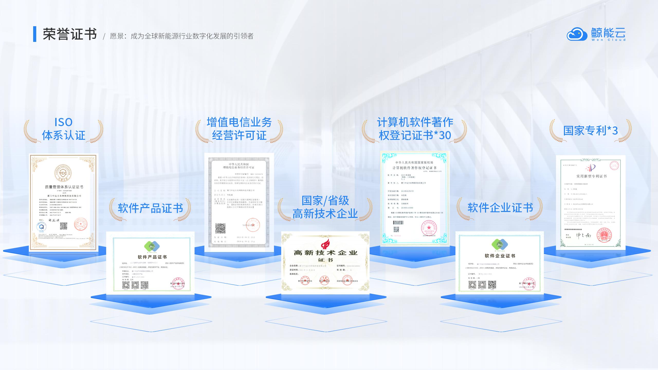 鲸能云是一个面向新能源领域的数智化产品研发平台,由厦门中远方舟网络科技有限公司自主研发,致力于为新能源企业提供专业、智能、高效的数字化升级整体解决方案,帮助企业提升核心竞争力,持续为客户创造价值。作为以技术驱动为核心的国家高新-双软技术企业,积极服务于国家“30•60”双碳战略目标,不断探索新场景、新技术、新架构,持续推动能源领域数字化进程。