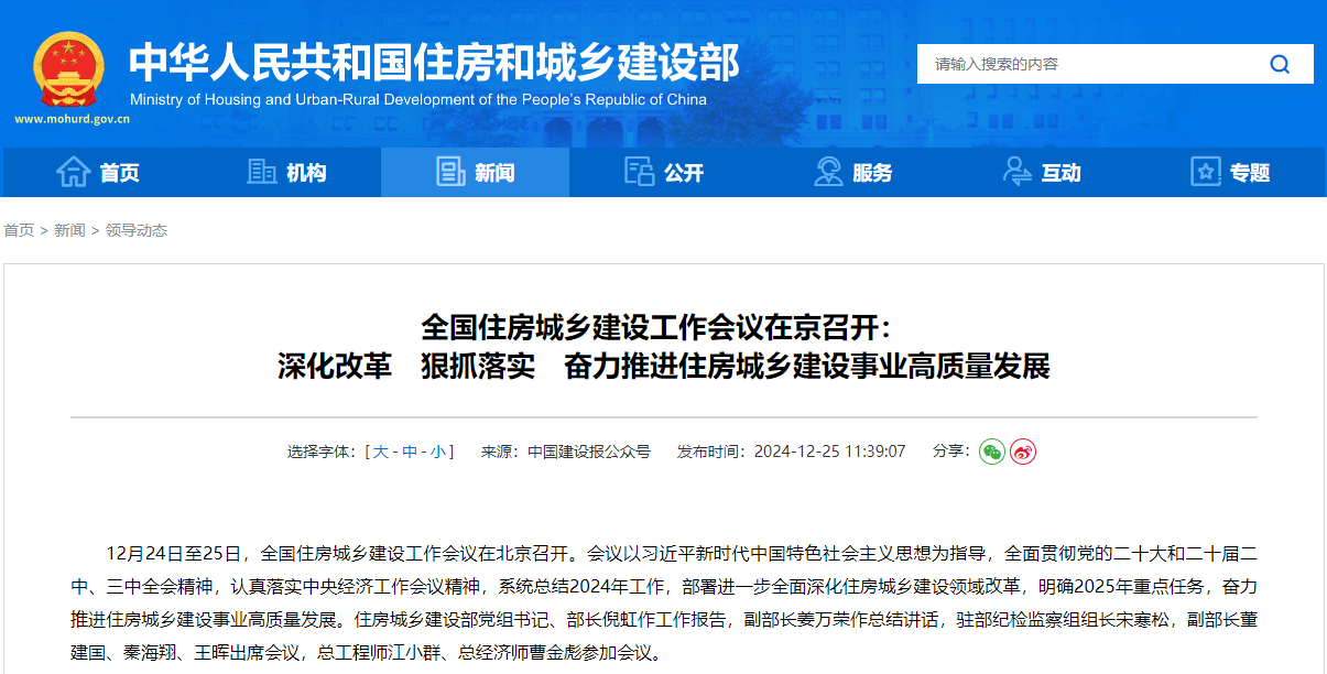 全国住房城乡建设工作会议:2025年全面执行绿建标准 开展建筑光伏高质量发展试点